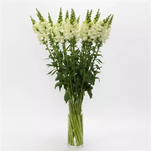 A creamy ivory-white snapdragon with tall stems and premium florist quality.