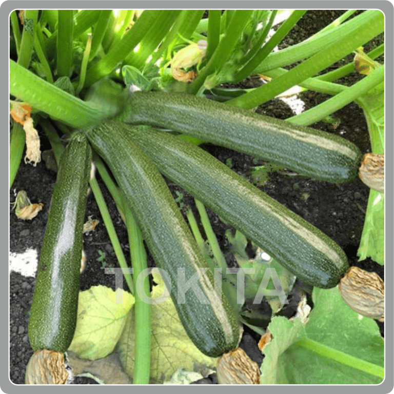 An early-maturing green zucchini known for vigorous plant growth, dark green color, and suitability for high-density planting.